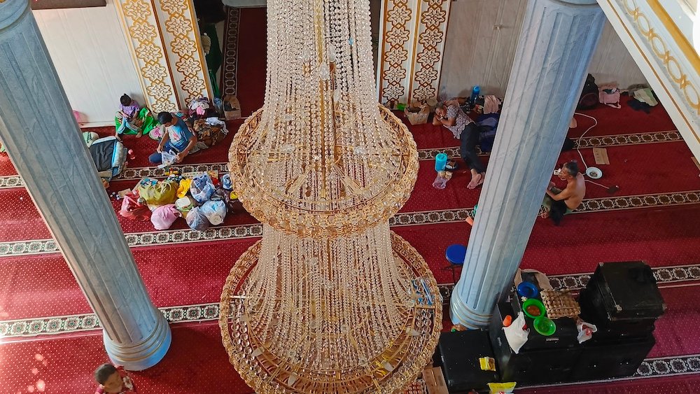 “Sudah 6 hari (banjir), mulai dari hari Rabu kemarin. Semalam ada bantuan pangan masuk, dari relawan-relawan gitu. Kalau bantuan dari pemerintah, baru hari ini lah masuk. Karena memang di sekitar sini semua terkepung air,” kata salah seorang warga yang mengungsi di Masjid At Taqwa.