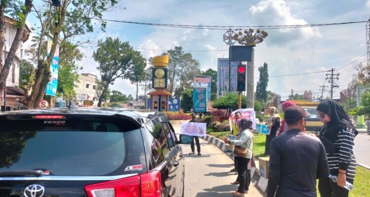 Stabat – Beberapa guru menggelar penggalangan dana di Simpang Bupati, Jalan Proklamasi,