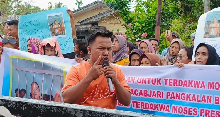 Diduga Dikriminalisasi PT ALAM, Puluhan Warga Desak Hakim Bebaskan Terdakwa Peristiwa|Selasa, 14 April 2026Selasa, 14 April 2026oleh redaksi Brandan – Puluhan massa berorasi di depan Tempat Sidang Pengadilan Negeri (PN)